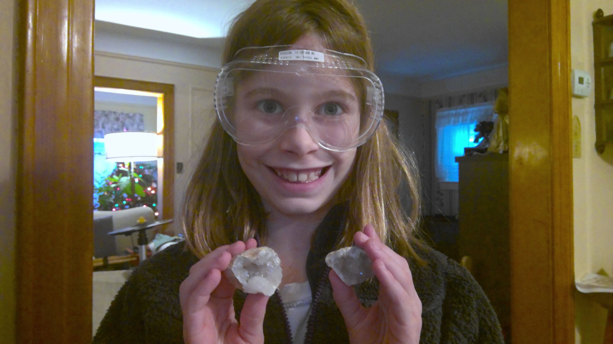 Today on December 28/2021 ~December 29 2021 soon to be 2022, me and my cousins Dylan, Neil opened 6 geodes. Some shards were left behind, but most big shards were taken inside. They all look like the ones that I am holding in my hands and many more pieces